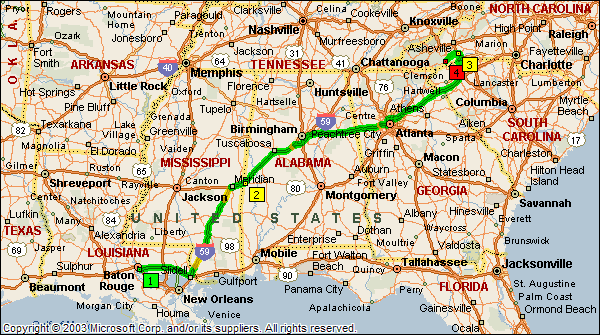 Route: Rout may vary between going through Birmingham, Al or Montgomery, AL depending on riders' needs. This map only shows the potential Birmingham route.